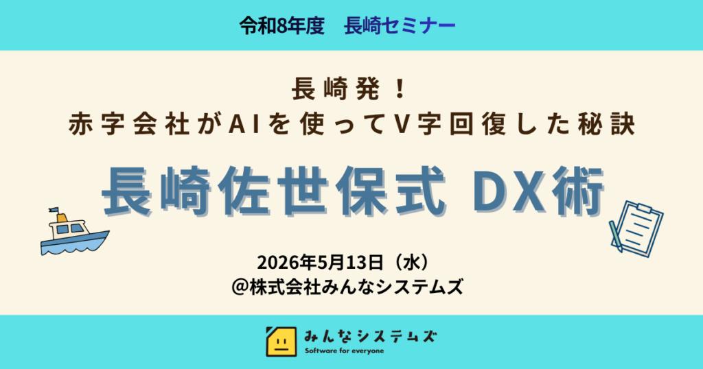 参加費:無料 申込ページ:https://minna-systems.co.jp/lp/seminar/nagasaki/